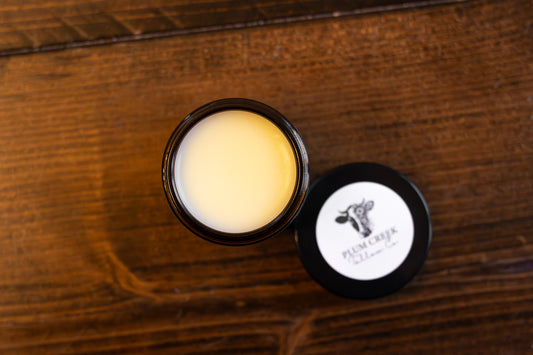 Our classic whipped tallow is made using pure leaf fat (beef suet) from our pasture raised cattle. Yes, this does sound crazy, but it is a clean-all natural, effective remedy that our ancestors used in their daily routines! It undergoes a purification process and is enhanced with moisturizing oils infused with herbs and 100% therapeutic grade essential oils. Our scented formulas are light and follow IFRA guidelines of safe dilution for use on your face and body as part of a daily routine
